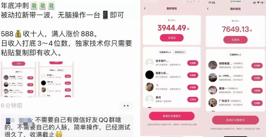 年底冲刺,被动拉新带一波,无脑操作一台手机即可!日收入打底3~4位数,独家技术你只需要粘贴复制即有收入。