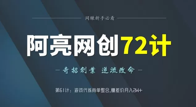 阿亮网创72计第61计:游戏代练商单整合,赚差价月入2W+