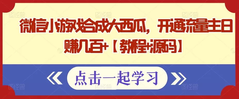 微信小游戏合成大西瓜,开通流量主日赚几百+【教程+源码】