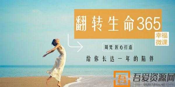 推荐一个改变自己的课程《周梵翻转生命365,建立全新的自己课程视频》,在周梵老师的带领下,通过一年时间不间断的学习,在两性、亲子、金钱、身体、自我从这五个领域中不断清理限制自己的信念,并扩充疆域,获得更大的力量!课程都是视频,可以直接看!