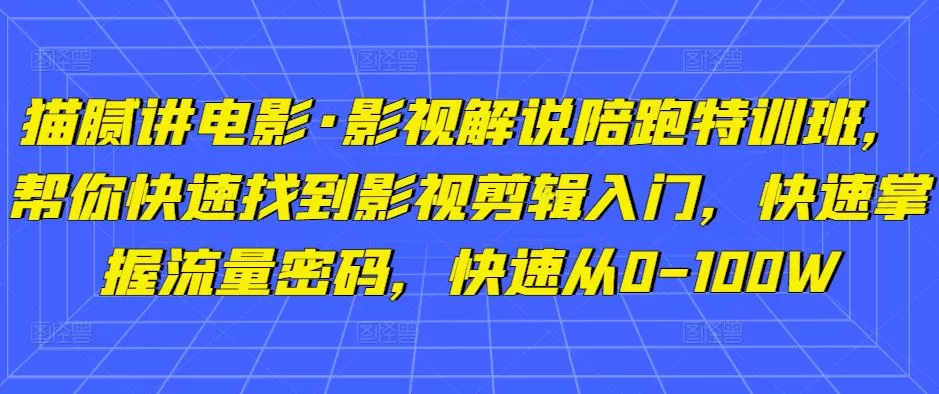 猫腻讲电影·影视解说陪跑特训班,帮你快速找到影视剪辑入门,快速掌握流量密码,快速从0-100W