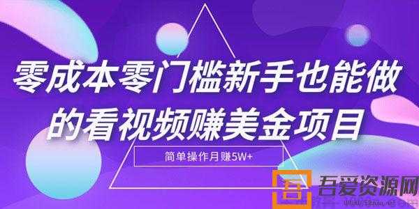 零成本零门槛新手也能做的看视频赚美金项目 百度网盘 VIP会员免费下载。