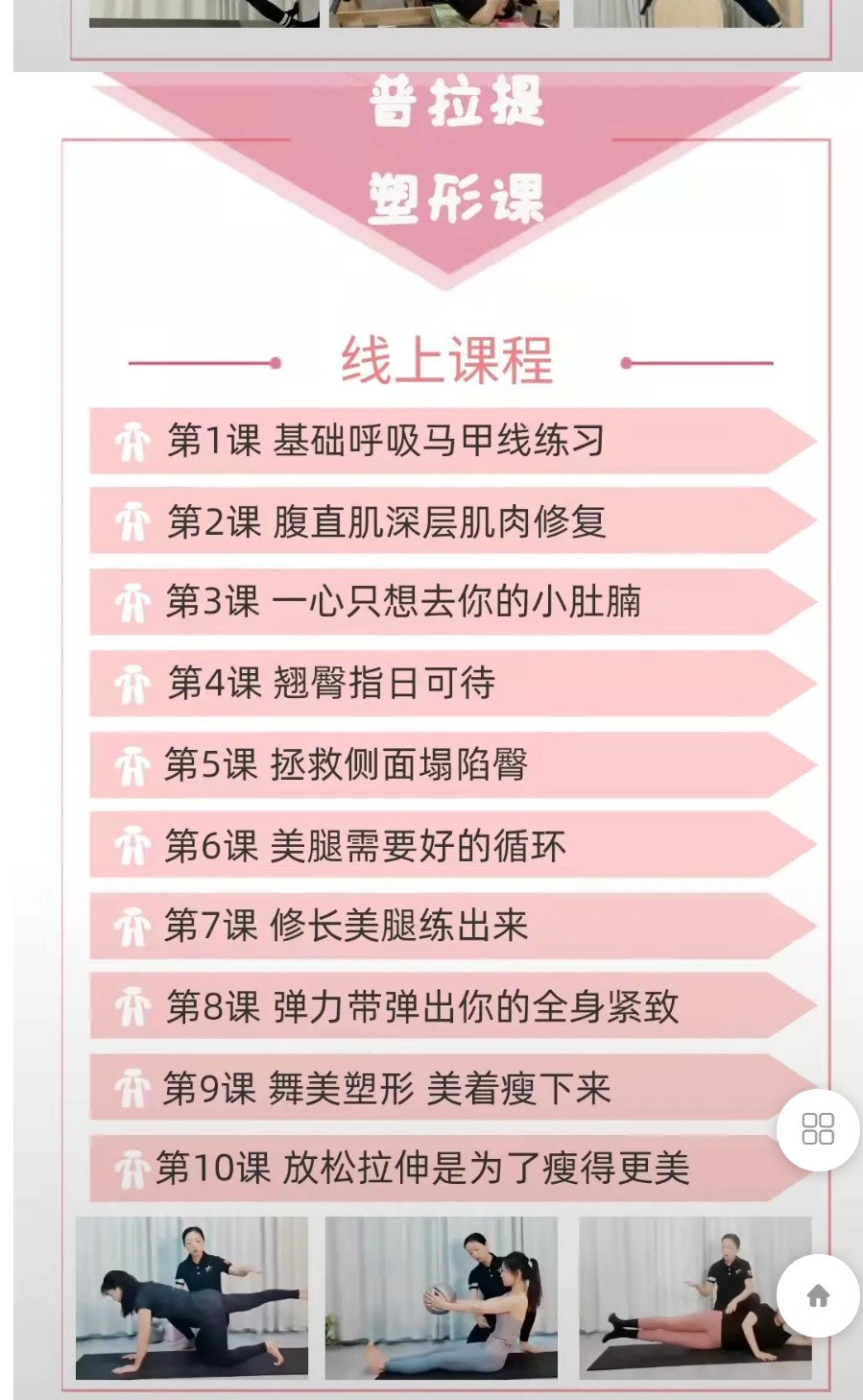 【20[红包]·S7012普拉提塑形课】 ●汪星球搜索下单 ●赏金猎人50%分佣 内容看图,或者汪星球搜索 499《S7012普拉提塑形课》 捐赠20[红包],即可获得学习权限 会员、代理、合伙人可通过汪星球右上角专属链接返佣