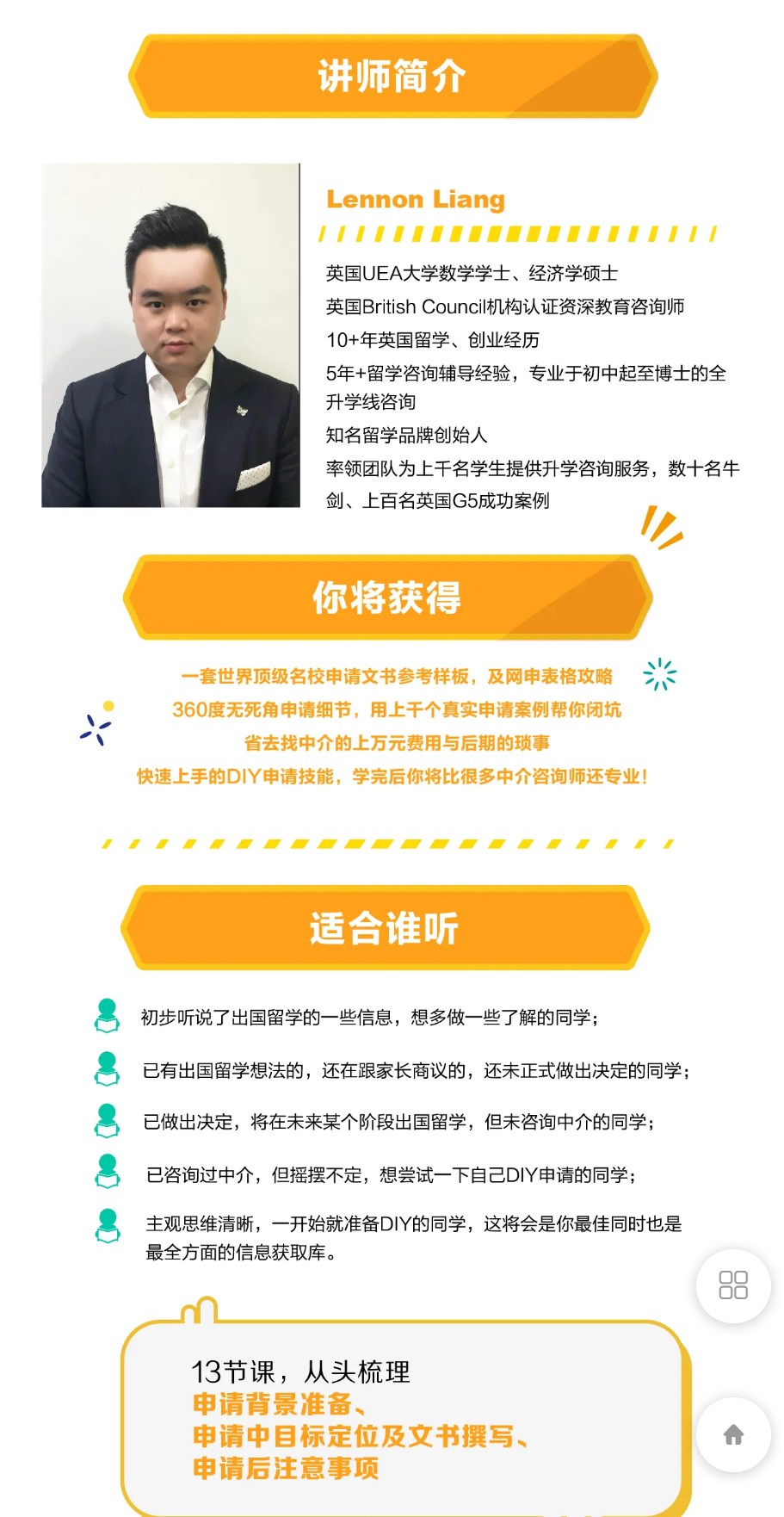 【69[红包]·S7323英国BC认证资深留学咨询师:全干货教你DIY英国顶级名校】 ●汪星球搜索下单 ●赏金猎人50%分佣 内容看图,或者汪星球搜索 298《S7323英国BC认证资深留学咨询师:全干货教你DIY英国顶级名校》 捐赠69[红包],即可获得学习权限 会员、代理、合伙人可通过汪星球右上角专属链接返佣