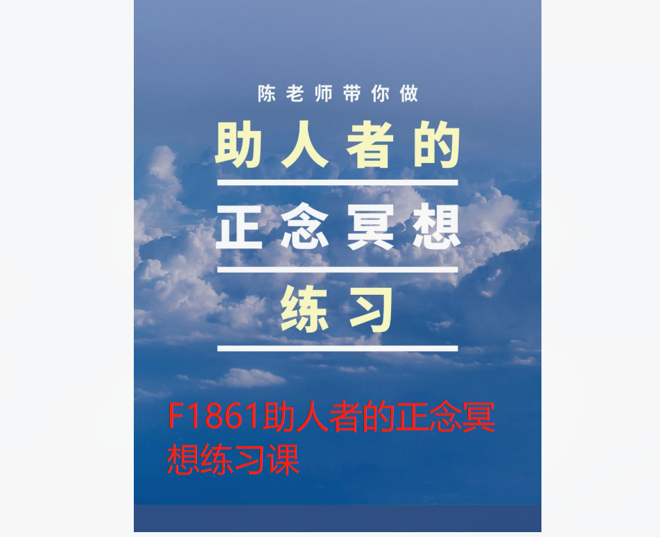【27[红包]·F1861助人者的正念冥想练习课】 ●汪星球搜索下单 ●赏金猎人50%分佣 内容看图,或者汪星球搜索 799《F1861助人者的正念冥想练习课》 捐赠27[红包],即可获得学习权限 会员、代理、合伙人可通过汪星球右上角专属链接返佣