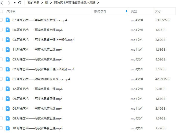 阿妹艺术写实油画系统课水果班【画质不错只有视频】