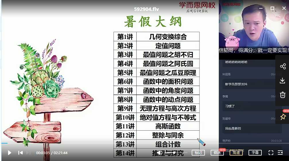 【2020暑假】初三数学目标班 朱韬 共 14讲