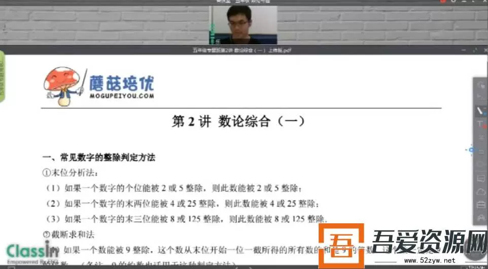 蘑菇网校 蘑菇培优五年级数学专题课 百度网盘 VIP会员免费下载,本课程由吾爱资源网收集整理。