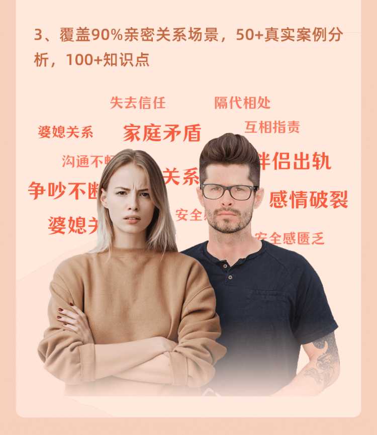 让你学会放弃“控制”、放弃“是非”、放弃“说服”,把生活中的案例进行系统化拆解,学习到【爱情三元素】【行为模式】【角色扮演】等心理概念。