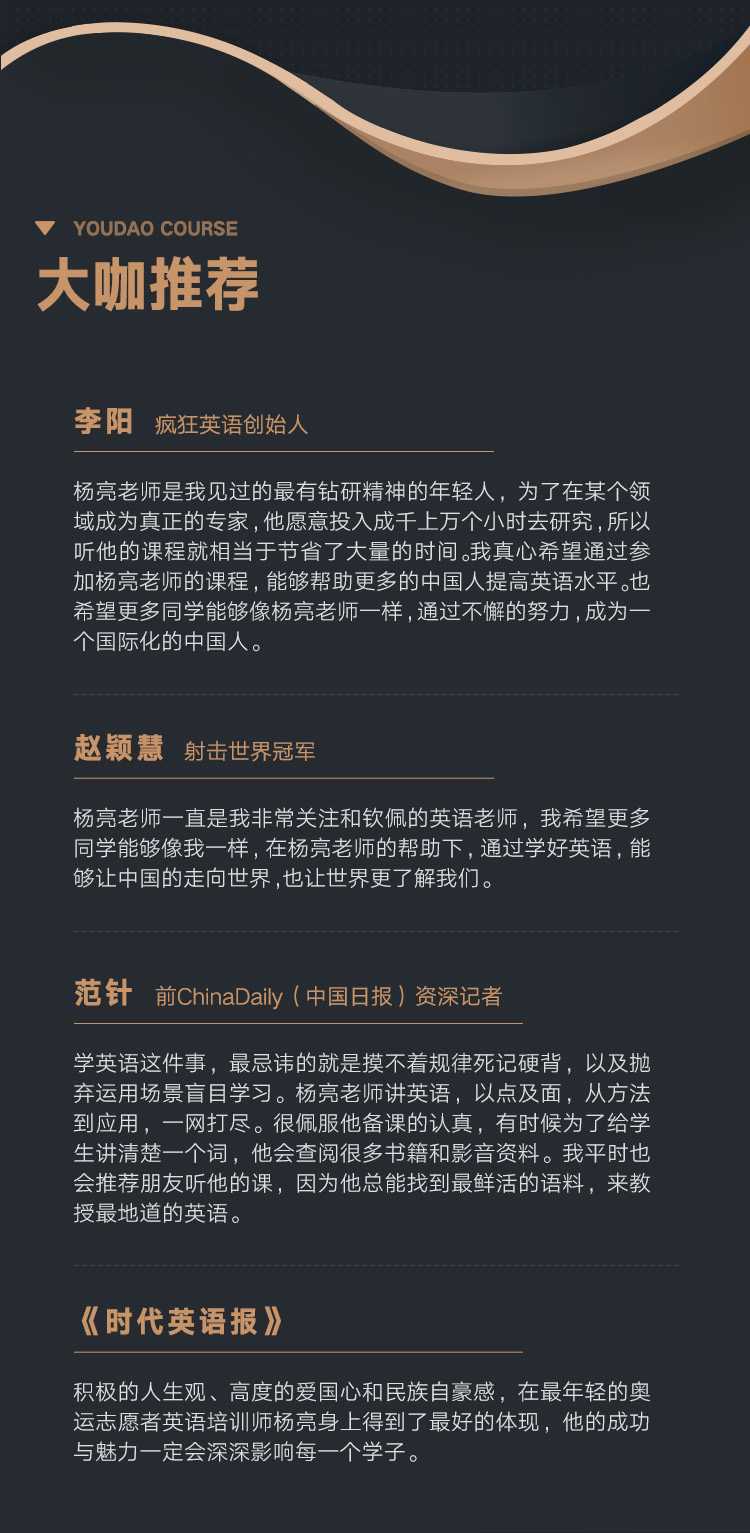 有道 杨亮讲英文 全民英语背诵营2020(第四季完结)【价值6999】资源简介: