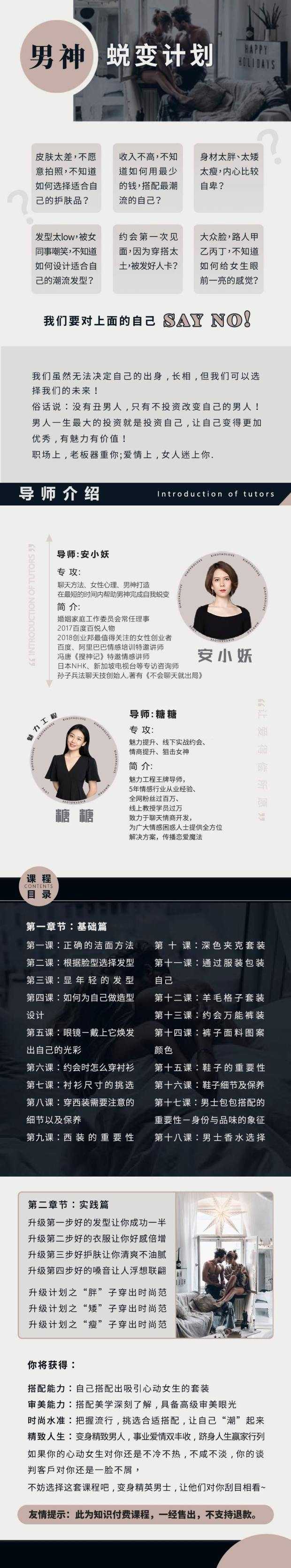 安小妖《男神蜕变计划》变身魅力男生,轻松追到你爱的女生——更多资源,课程更新在