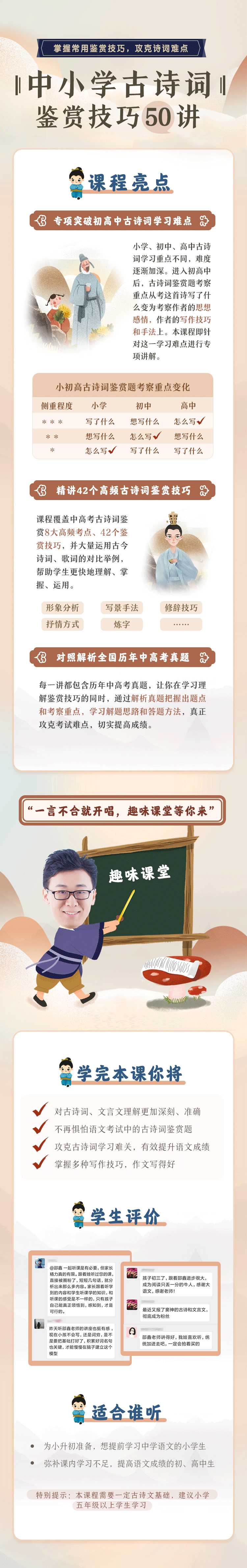 中小学古诗词鉴赏技巧50讲,掌握常用鉴赏技巧,攻克诗词难点