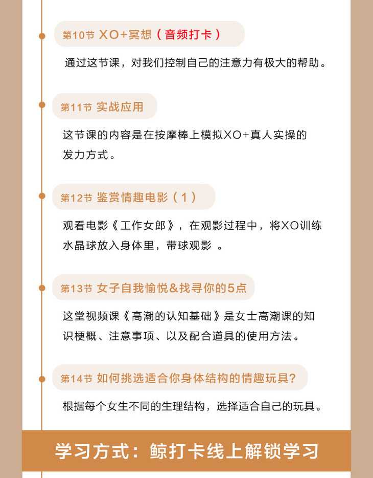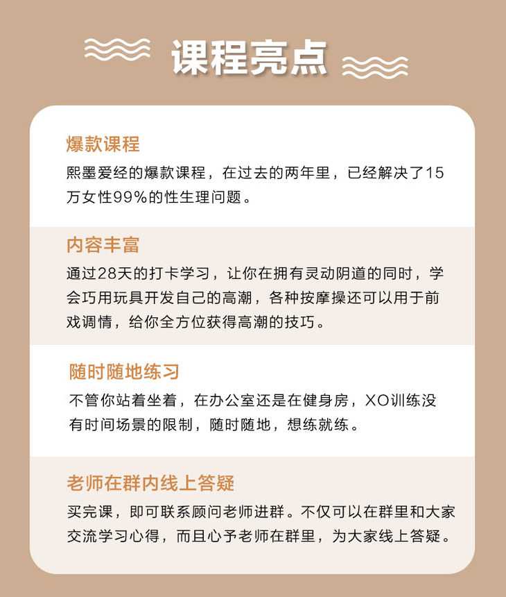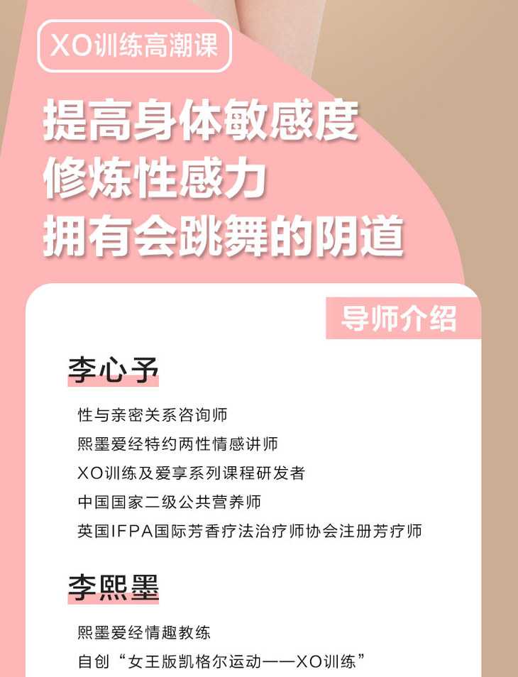 这一次让阅丁无数的行业知名导师李熙墨带你快速掌握现代浪漫爱经的核心秘诀,通过每日配套训练实现『情趣高手进阶』,成为最懂高巢的少数人,开启幸福可期的开挂人生