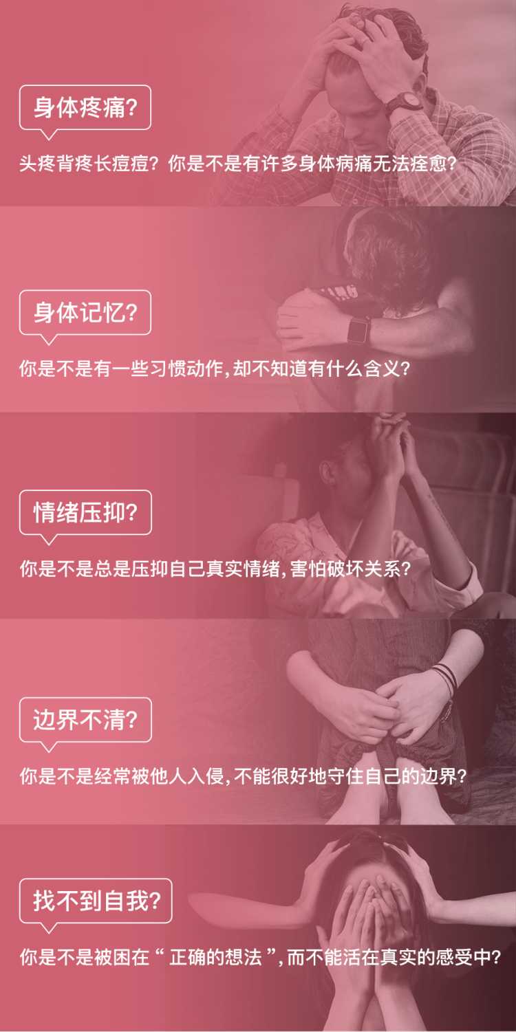 通过追溯身体记忆,探索创伤的根源,获得疗愈,拥有一个更自在的人生。