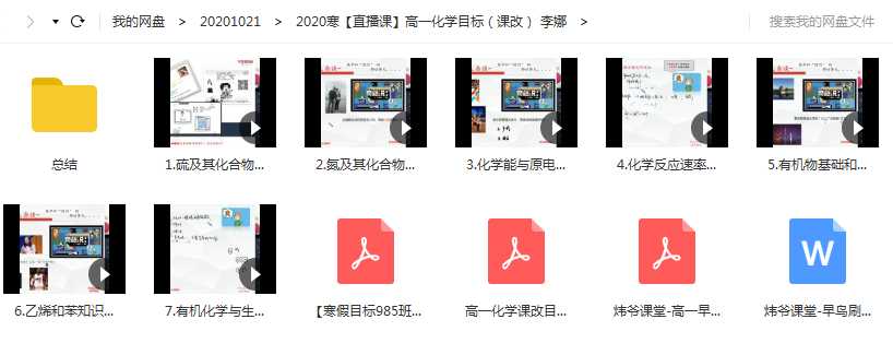 【2020寒】炜爷高一化学直播课目标985班(课改)课程目录