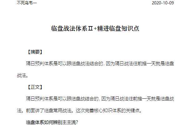 淘股吧不死鸟韦一20201009临盘战法体系2 精进临盘知识点1PDF