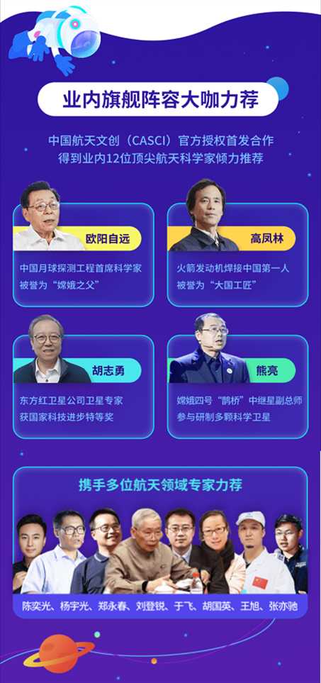 百余年来,人类对广袤无垠的宇宙星空,从未停止过探索的脚步。随着科技对社会的影响越来越深远,科学也对中国孩子的升学发挥着越发重要的作用。当孩子提前掌握了航天科技的前沿知识,在未来的学习和成长道路上,将至少领跑同龄人三倍!因此,这趟以揭秘中国航天为名的科技启蒙之旅,将势在必行。