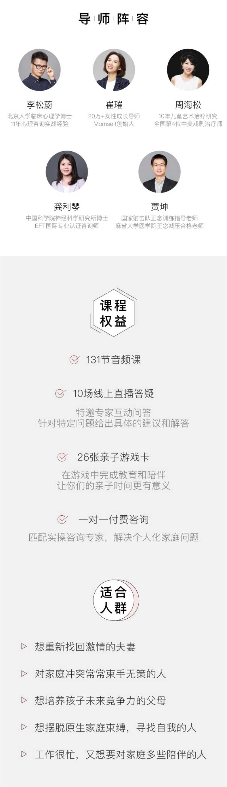 四大关系维度,搭建“幸福家庭”体系亲子关系、亲密关系、家庭关系、工作家庭,系统涵盖家庭成员间90%的相处问题