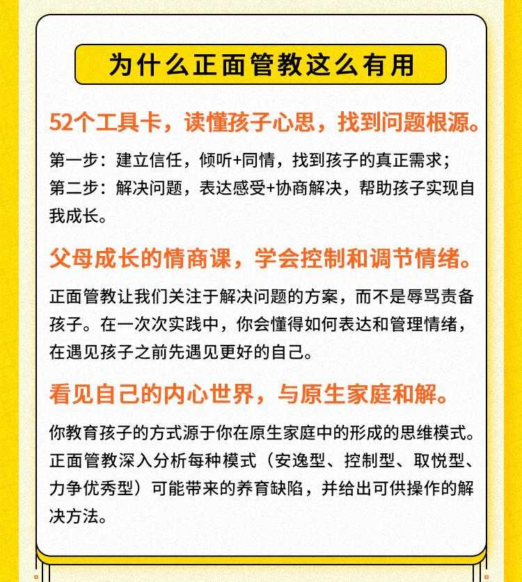 每课都配有图文并茂的正面管教工具卡,帮助你随时随地复习巩固,找到解决问题的对应方法。