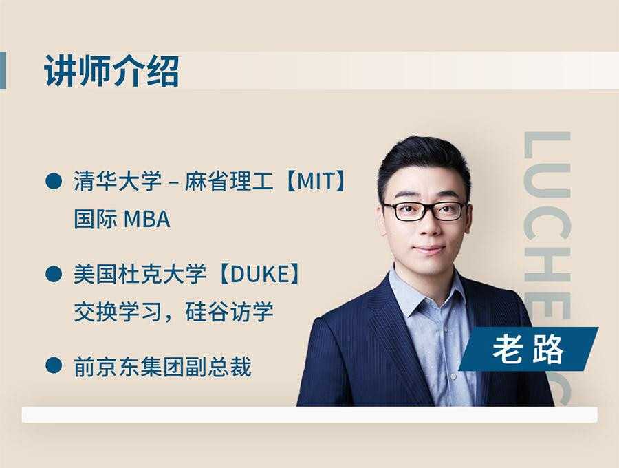 老路(路骋【LU CHENG】)——老路识堂创始人兼CEO;历任京东集团副总裁,聚美优品POP事业部总经理等;清华大学 – 麻省理工【MIT】国际MBA;系列精品课《用得上的商学课》主讲。