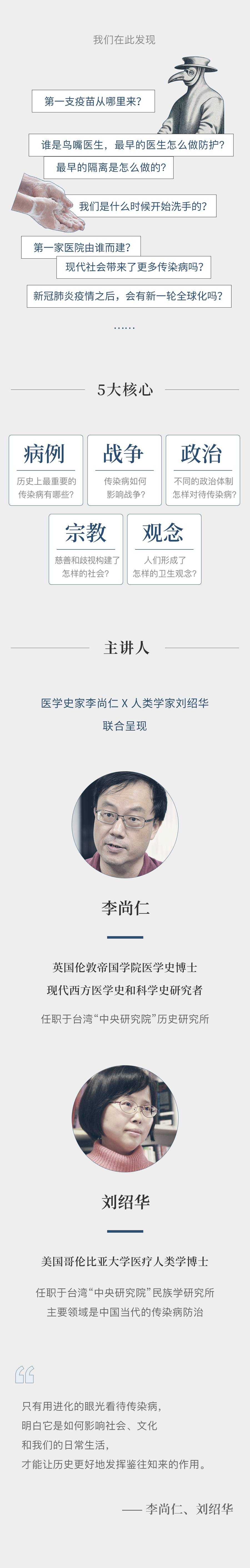 医学史家李尚仁、人类学家刘绍华《传染病与人·20讲》——更多资源,课程更新在