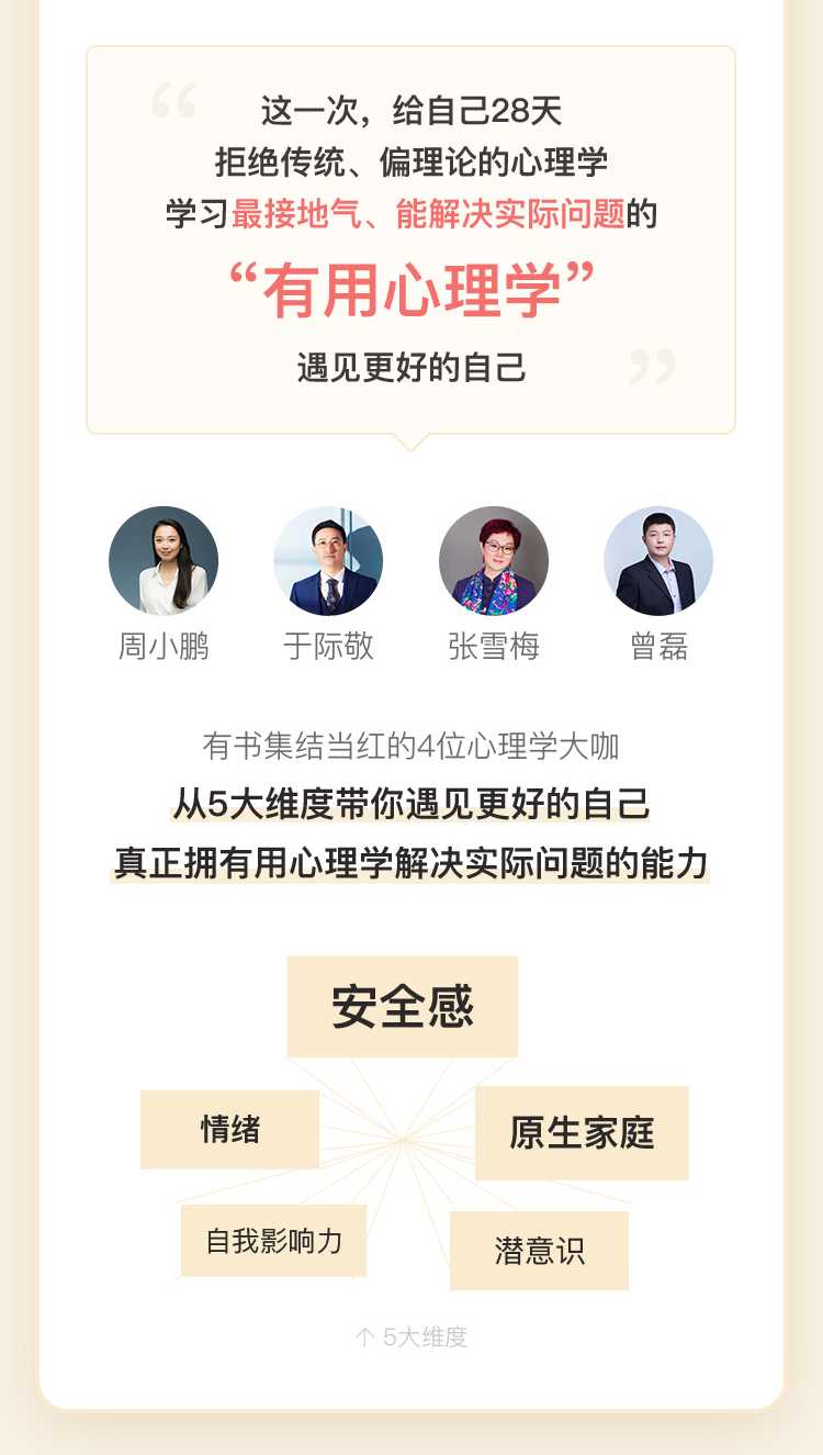 这一次,给自己28天拒绝传统、偏理论的心理学学习最接地气、能解决实际问题的“有用心理学”遇见更好的自己