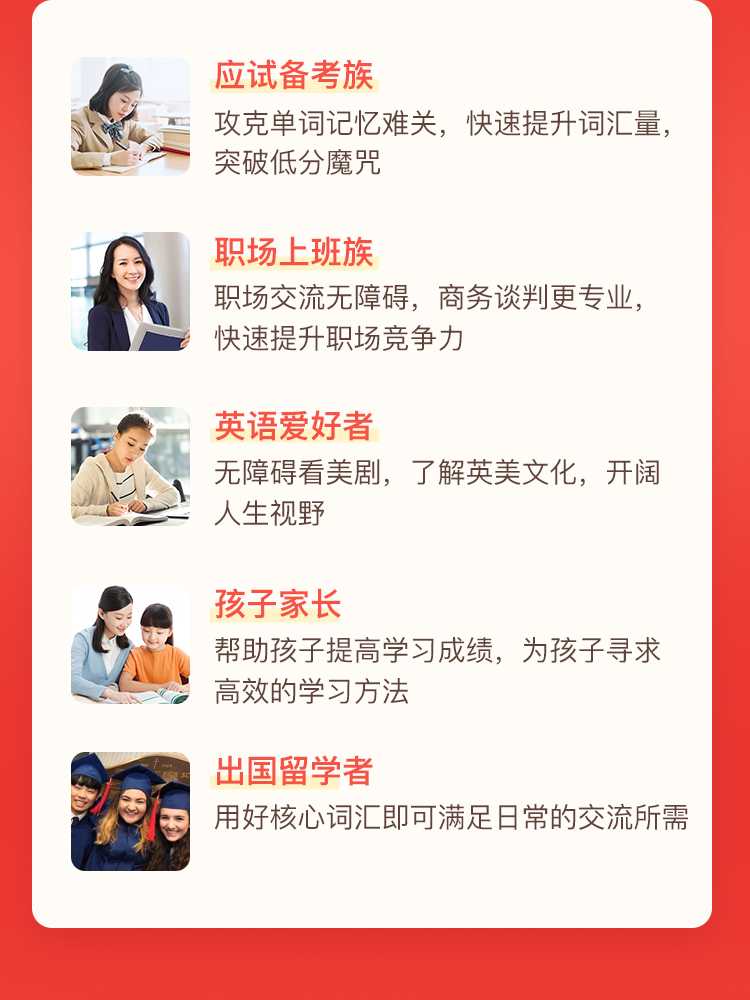 ·在实际的语境中讲解单词,同步讲解语法精髓,提升词汇量的同时掌握英语语法精髓,英语阅读及口语表达能力同步提升。