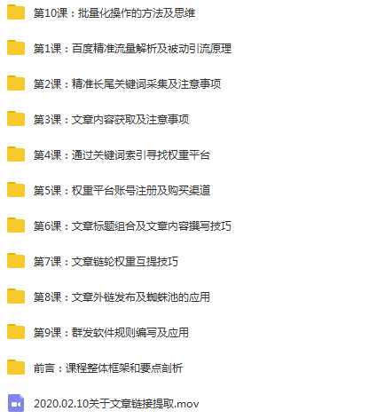 百度被动引流过万系统2.0课程目录: