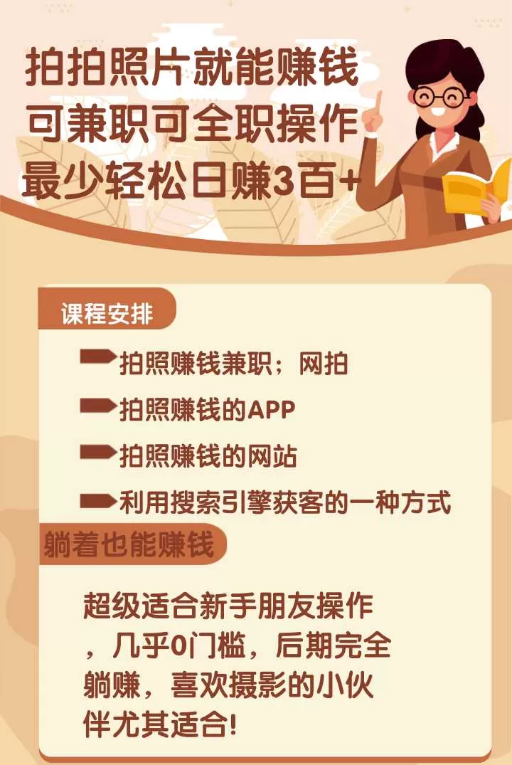 拍拍照片就能赚钱可兼职可全职操作最少轻松日赚3百+