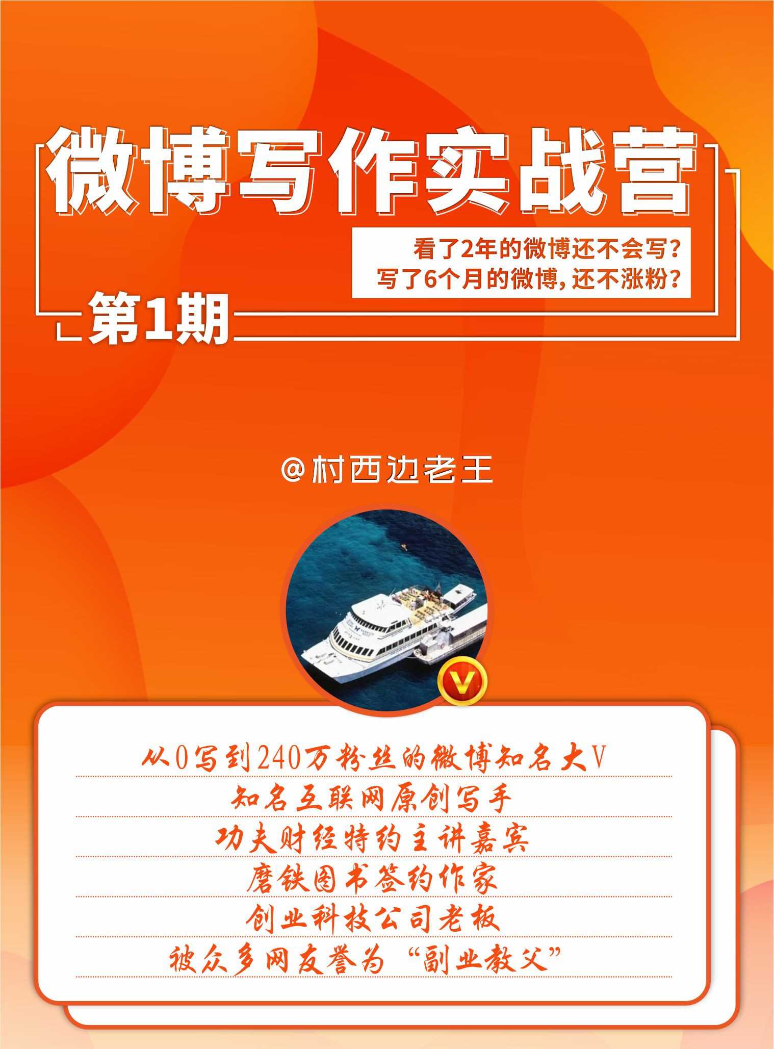 首次开班自媒体写作的实战营。这是一个教你如何从0-1进行自媒体写作的实战营,21次命题写作+21次当堂作业,从0-1保姆式教学,教你从0到1成为微博大V,涨粉又吸金。