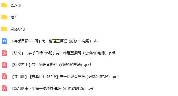 春季目标985班高一物理章进直播班(必修2+电场)全16讲课程目录