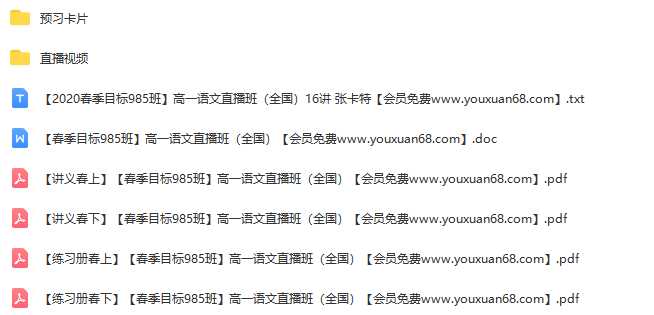 春季目标985班高一语文直播班(全国)张卡特全16讲课程大纲