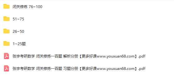 张宇考研数学闭关修炼一百题精讲视频及文档资源简介: