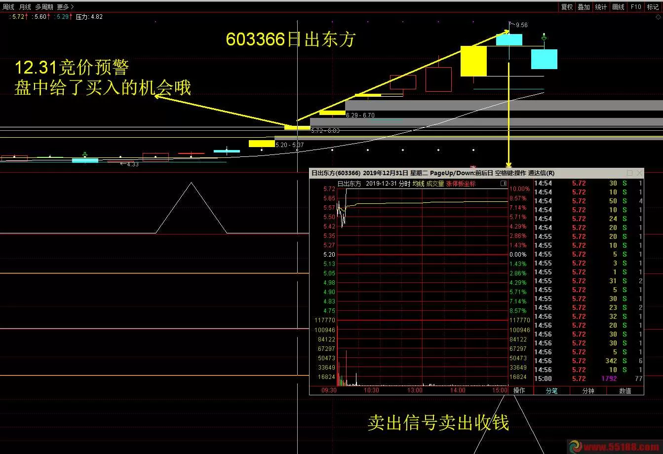 本战法适用于有时间盯盘并喜欢超级短线操作的朋友,预警出票后,结合集合竞价选股方法,当天买入,第二天冲高不封板卖出