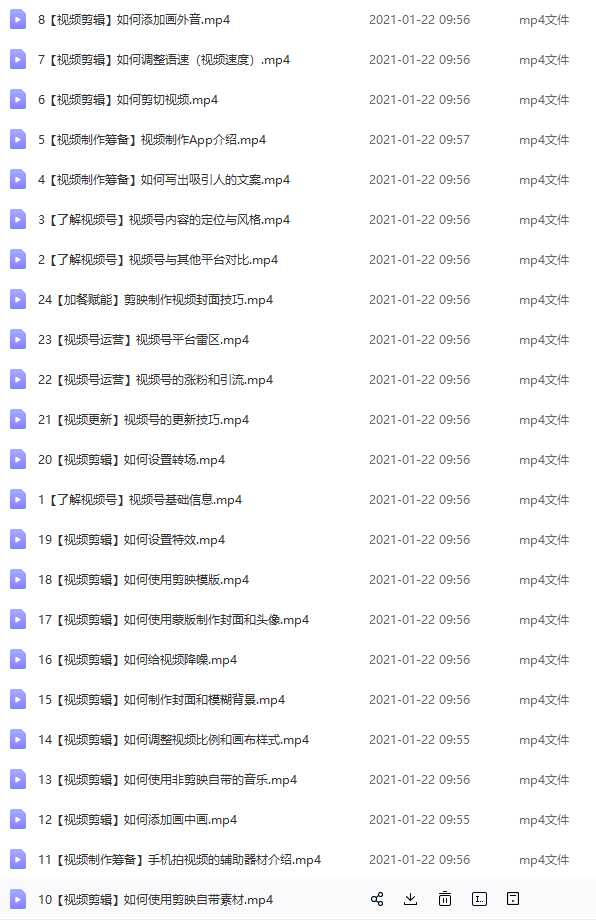 聚变学院30天视频号成长营:视频号制作筹备+视频剪辑+视频号运营+引流变现资源简介: