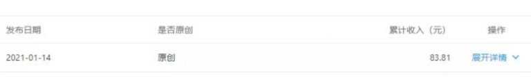 这是我14号发的,一篇文章累积收入是83.81,整体还算不错。