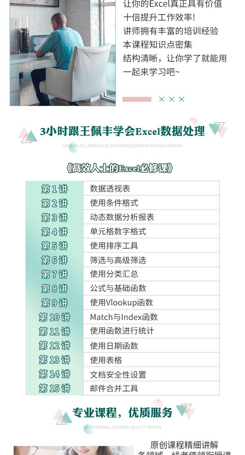 3小时跟王佩丰学会excel数据处理课程目录: