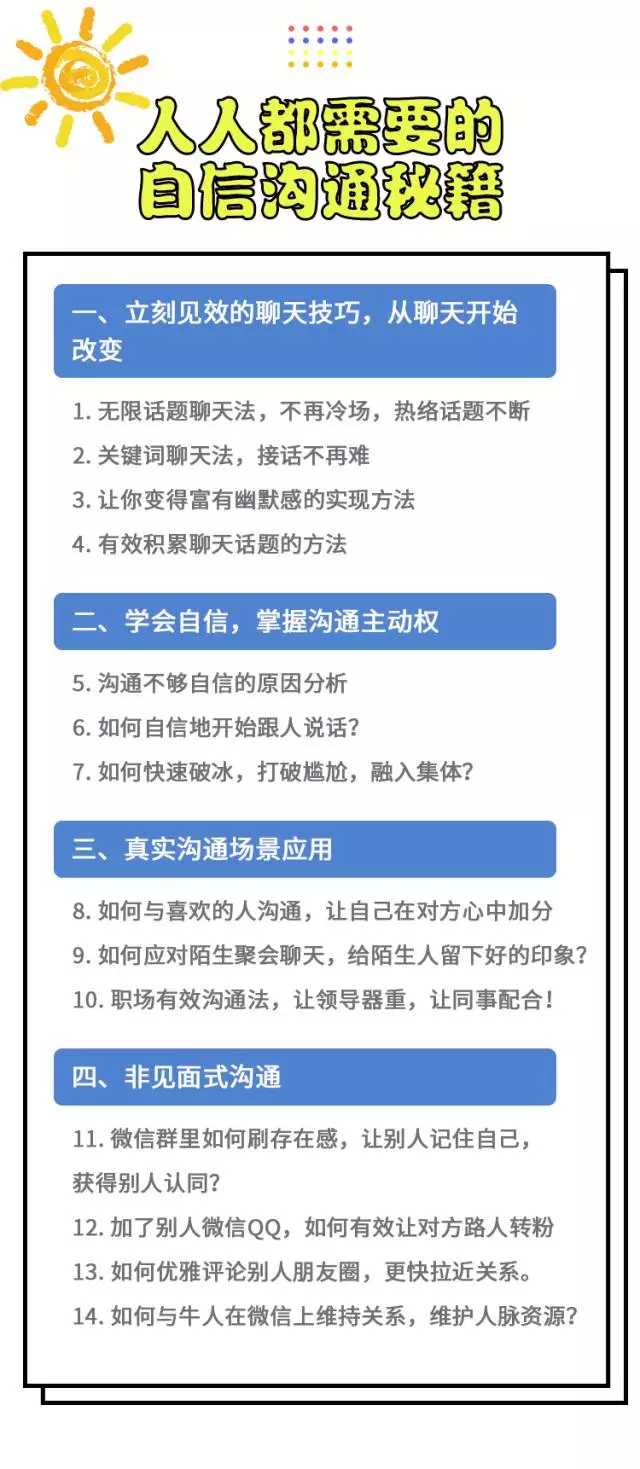 Get更多新技能:除了为你解锁更多沟通聊天的方法,还能学到超好用的无限话题聊天法,关键聊天法,有效积累聊天话题的方法等等!