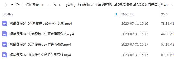 2020年K哥团队大红老师 A股课程 A股极简入门课程4节 视频资源简介: