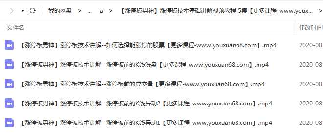 【涨停板男神】涨停板技术基础讲解视频教程 5集资源简介: