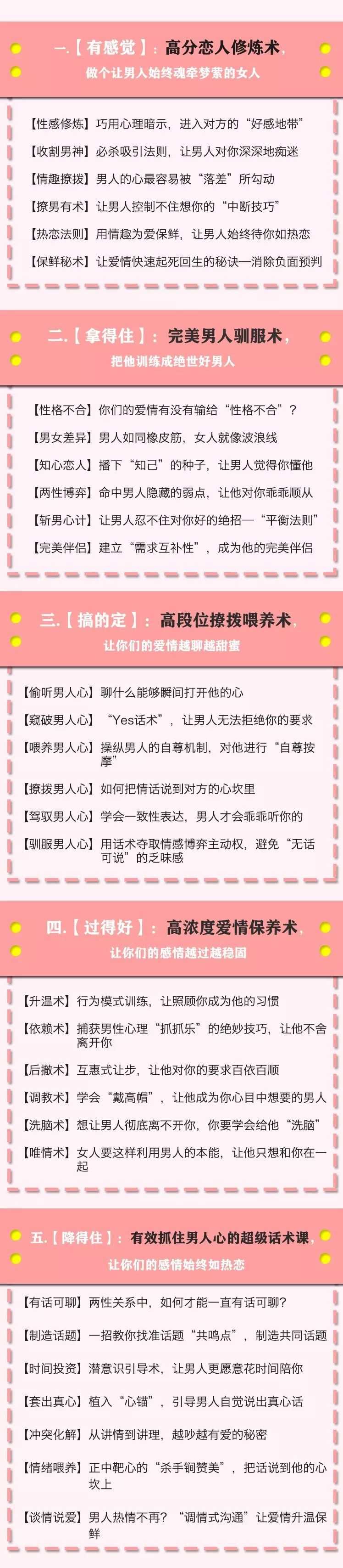 这套课程中,他们将教你 招招致胜的5大绝招,把男人紧紧抓在手中—