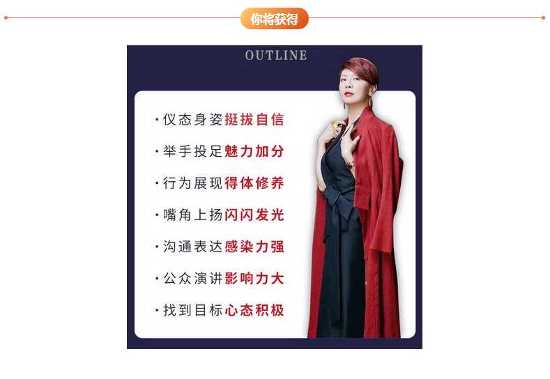 27节气场修炼课,从细节着手,意在打造更多渴望优秀的女人,既有气质又有气场,还能hold住饭局、职场和朋友圈。她的逆袭秘诀包含: