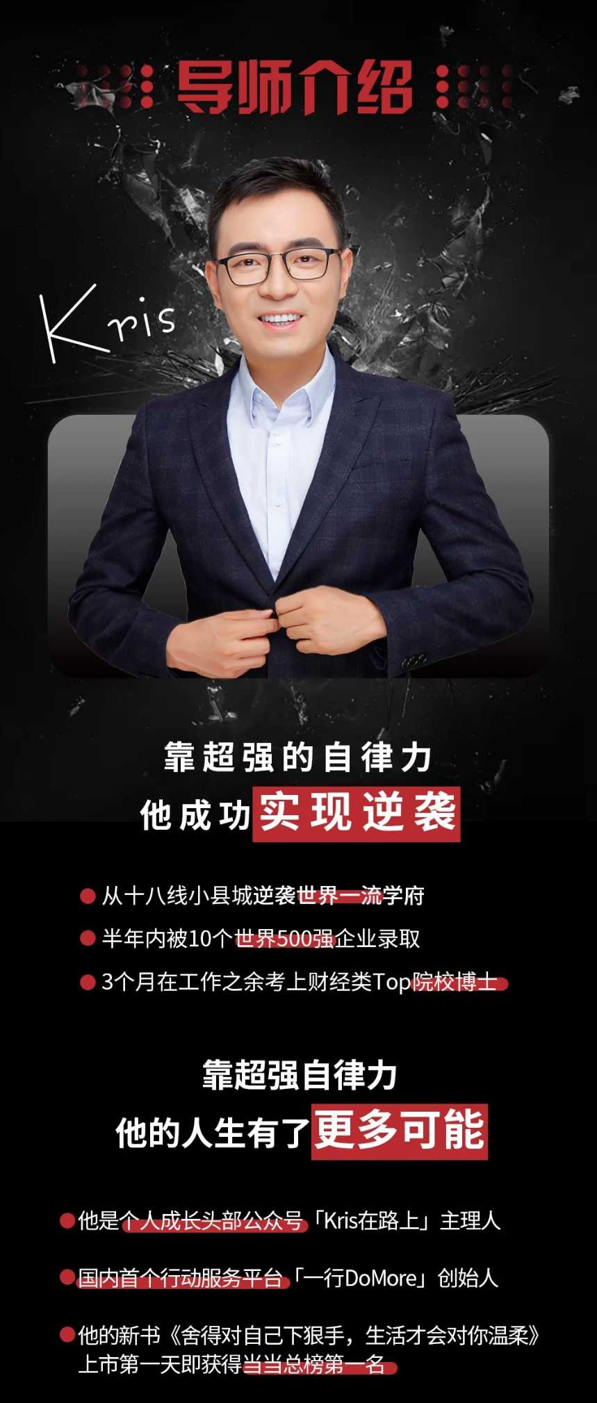 “凡是成功者,他有很多品质,但有一个品质是共有的,那就是自律”