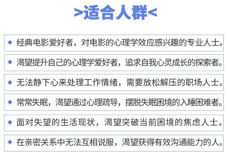 擅长通过电影来解决心理问题,帮助众多人做自己的人生导演,活出自己的人生大片。