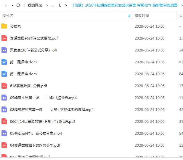 有股仙气 2020年仙姐趋势复利实战训练营课程目录: