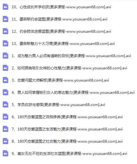 墨菲斯《恋爱蓝图》视频教程是一套价值3999元的恋爱技术视频教学。你会发现它能影响的不单是恋爱成长,它能带给你更多的人生转变。因为,一切问题都是心态问题,一切关系都可以是恋爱关系。