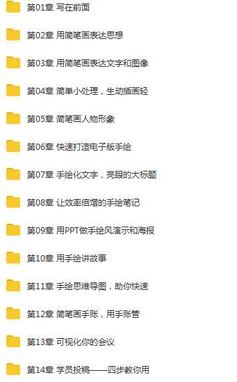 手绘配图、随手涂鸦、逻辑框图、手绘日记、思维导图、可视化会议、亲子教育、工作笔记、手绘海报、PPT演示。掌握手绘技能,无论在什么时候什么地方,你也可以靠画图成为万众瞩目的焦点,成为朋友圈中的大神!