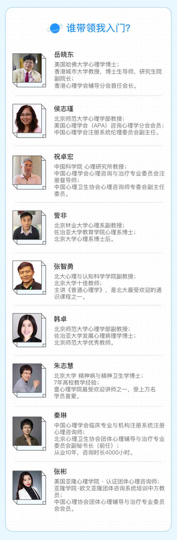 壹心理学院心理学科班出身的研发团队,根据小白的需求,研发出一套系统的、人人都能听懂的课程;