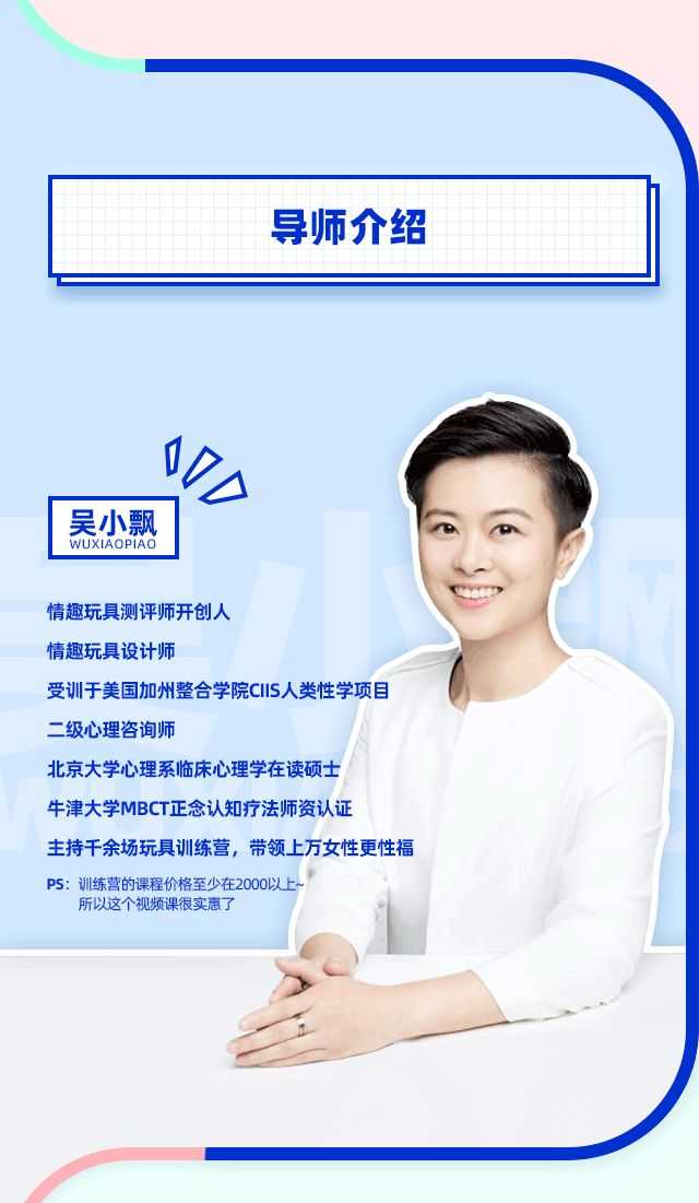 CW&吴小飘联合开发两性系列课程《女性必备的20堂情趣指南课》(完结)——更多资源,课程更新在