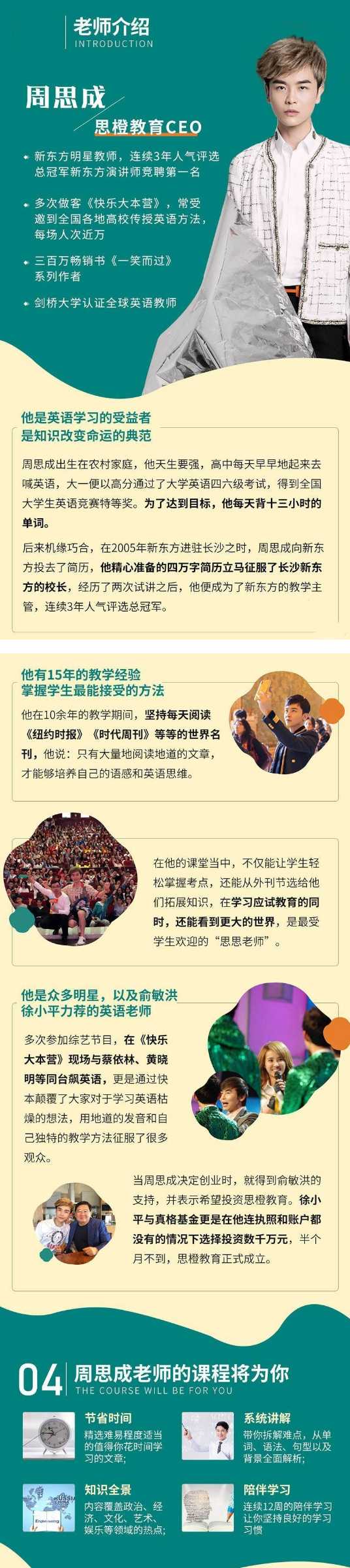 阅读外刊能扩充词汇量、积累文化背景知识、以读促进写作、提高阅读理解能力、提升英语思维。不用担心不懂方法、自学能力不够,周思成老师来带大家学习60篇外刊文章!